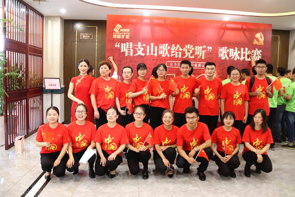 ? ? 五十余載,正是因為南礦人始終堅持貫徹黨的正確領導,不忘初心,才從一個由七朵金花組成的小作坊,歷經千錘百煉,一步步發展至今,由單一產品制造商成長為全產業鏈運營商,產品遠銷60多個國家和地區,人才隊伍由最初的7人壯大至目前的600余人。今后,南礦人會繼續牢記“銳意進取,追求卓越,致力礦業健康、環保、可持續發展和資源價值最大化”的初心使命,奮勇拼搏、開拓創新,在黨的光輝引領下,持續用智慧和汗水譜寫出一支支新時代的南礦贊歌。整場活動歷時2個多小時,高潮迭起、氣氛熱烈。活動尾聲時與會人員全體起立,共同唱響《南礦之歌》,將活動氣氛推向高潮。