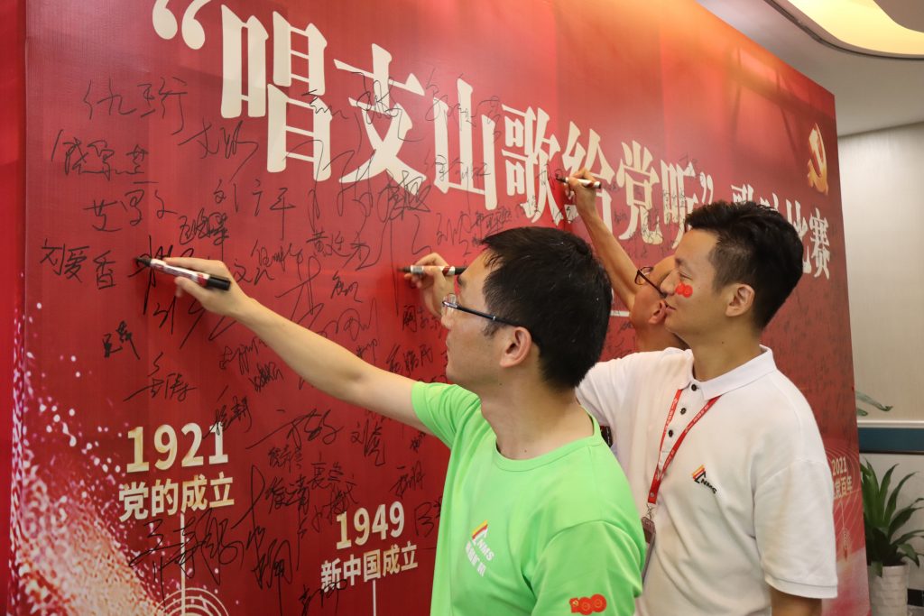 ? ? 南昌礦機董事長李順山在總結時表示,今天是一個歌唱的日子,在歌聲中我們領略了祖國在偉大中國共產黨的領導下,不斷取得令世界為之驚嘆的非凡成就,從歌詞中我們重溫歷史、展望未來。今天我們共同慶祝黨的百年華誕,希望南昌礦機全體員工樹立創新、協調、綠色、開放、共享的發展理念,一起在中國共產黨的領導下,在祖國的發展建設中、實現中國夢的征程中盡一份力量,為祖國的美好明天努力奮斗!