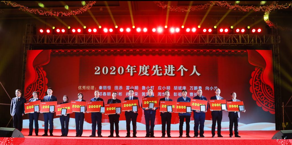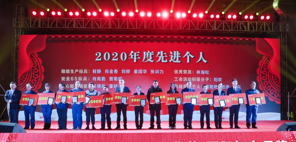 ? ? 慶典上,為答謝長期以來關(guān)心、支持南昌礦機(jī)發(fā)展的廣大合作伙伴與為企業(yè)作出貢獻(xiàn)的優(yōu)秀員工,特頒發(fā)了“卓越合作伙伴獎(jiǎng)”、“特殊貢獻(xiàn)退休員工獎(jiǎng)”、“卓越貢獻(xiàn)員工獎(jiǎng)”、2020年度先進(jìn)團(tuán)隊(duì)、2020年度先進(jìn)個(gè)人等獎(jiǎng)項(xiàng)。