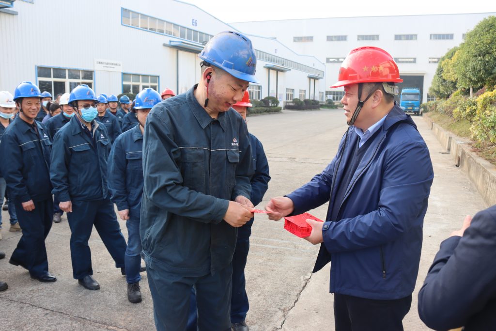 ? ? 隨后,象征著南昌礦機開啟2021年新篇章的禮炮被開啟,在熱烈的氛圍中,員工們高聲齊喊“開工大吉”,寓意著南昌礦機在新的一年里紅紅火火,蒸蒸日上。此外南昌礦機總裁龔友良還為每一位到崗的南礦家人送上了開工紅包及新春祝福,希望大家在新的一年里認真工作、心想事成。