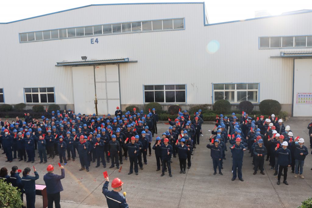 ? ? 當天上午8點08分,第一批回家的員工穿戴整齊、精神抖擻,齊聚車間門口,在主持人的開場語中,開工儀式正式拉開了序幕。