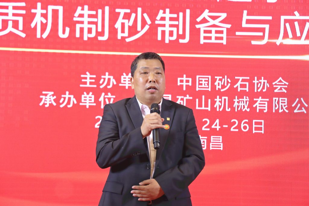 09? ?陜西煤化新材料集團有限責任公司副總經理李剛從機制砂石生產工藝和設備方面發表了意見。由于企業業主的側重點不同,關注點不同,很多企業為了設備省小錢,最后虧了大錢。企業不僅要解決經濟效益、長遠效益,更要解決社會效益。李剛表示,我們應該感謝南昌礦機和中國砂石協會,南昌礦機解決了砂石級配“斷檔”,砂石協會解決了人才“斷檔”和思想“斷檔”問題,推動了行業高質量發展。