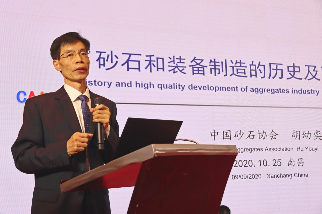 會上,中國砂石協會會長胡幼奕作了題為《砂石和裝備制造的歷史及高質量發展》的主旨報告,他從三次工業革命談起,隨即詳盡地介紹了破碎篩分裝備、機制砂石應用的歷史及發展,并就“智能制造和智慧礦山”、“未來砂石產業發展模式”、“企業要重視的幾個問題”這幾方面提出了自己的見解。