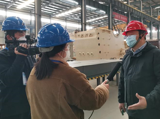 作為南昌市重點企業,南昌礦機復工復產情況也得到當地政府部門的高度重視。2月18日,南昌市灣里區廣播電視臺專程來到南昌礦機一線生產車間進行報道,并對南昌礦機總經理龔友良先生進行了專訪。龔友良總經理表示:南昌礦機一手抓防控,一手抓復工,在嚴格履行企業責任與擔當、有效落實防控舉措的基礎上,有力有序推進復工復產,確保抗疫情保生產兩不誤。