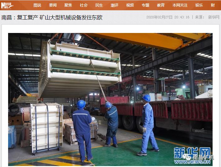 2020年2月27日,新華社記者到訪南昌礦山機械有限公司(以下簡稱“南昌礦機”),并對其通過“抗疫”與“生產”兩手抓,從而快速實現首批海外訂單交付做了報道。南昌礦機生產的3臺ZKR直線振動篩及1臺BS系列香蕉篩,已于當日通過生產技術及質檢部門對設備出廠前的認真仔細檢查工作,并順利完成裝車,啟程發往塞爾維亞交付客戶。