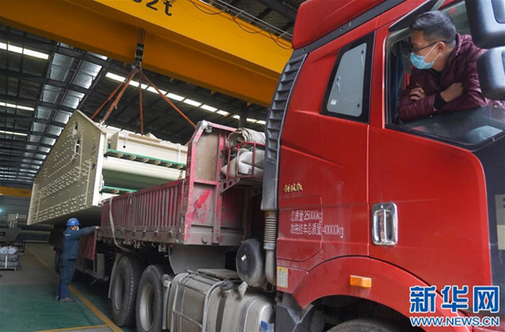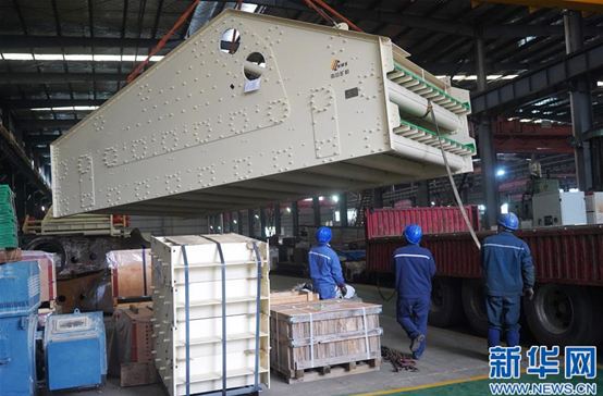 2月27日,裝載著出口篩分機設備的貨車駛出工廠。