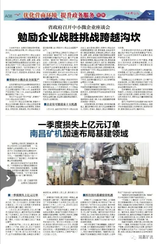 近日,南昌礦山機械有限公司(以下簡稱“南昌礦機”)總裁龔友良接受了江南都市報記者的采訪,并談到面對日益嚴峻的全球疫情,企業如何做到積極應對,并在當前的形勢之下迅速調整經營戰略,搶抓機遇。采訪報道中還提到,龔友良總裁認為“疫情只是公司發展過程中的一個插曲,未來南昌礦機還將從主機生產銷售,邁向系統集成總包及運營、備用備件生產銷售與主機生產為一體的全產業鏈運營,實現從制造業向制造服務業延伸的蛻變升級” 。