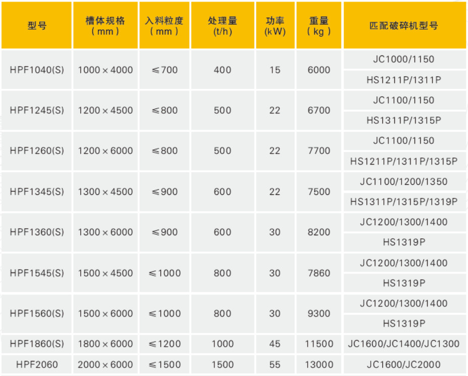 HPF重型振動給料機,適用于向初級顎式破碎機、初級反擊破碎機和初級錘式破碎機等進行給料,廣泛應用于石料、建材和冶金礦山行業(yè)。HPF型給料機高度較低, 布置空間小, 其最大處理量達1500TPH,最大給料粒度達1.5m,標準給料斗容量25~45m ;